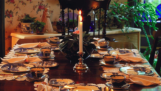 “A sumptuous breakfast is served in the dining room . . . on family silver and china.”