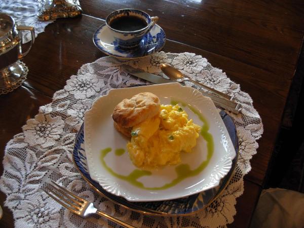 A sumptuous breakfast is served in the dining room . . . on family silver and china.