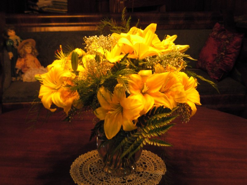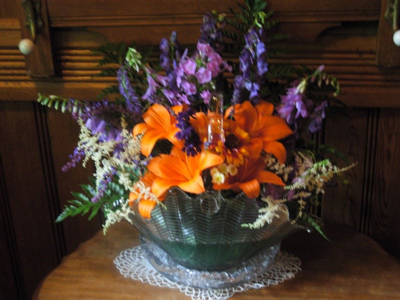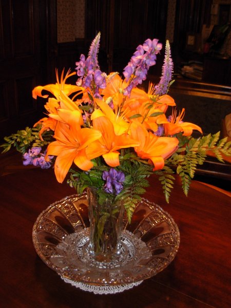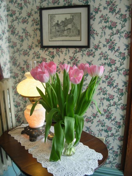 Upper Valley Magazine, New HampshireIn 1986 when we purchased Elmwood we began to establish gardens on the property. There are now extensive areas planted with spring bulbs, perennials, many varieties of hosta, iris, day and Asiatic lilies, peonies, flowering shrubs, mosses and ferns, a shade garden, a green garden and new trees are being added to the Hawthorn, Yellow Plum, flowering Crabapple and others to further naturalize the perimeters. Carol brings the outside in with her beautiful arrangements and when our own blooms don’t suffice, her main supplier becomes Isobel at the local Farmer’s Market.
